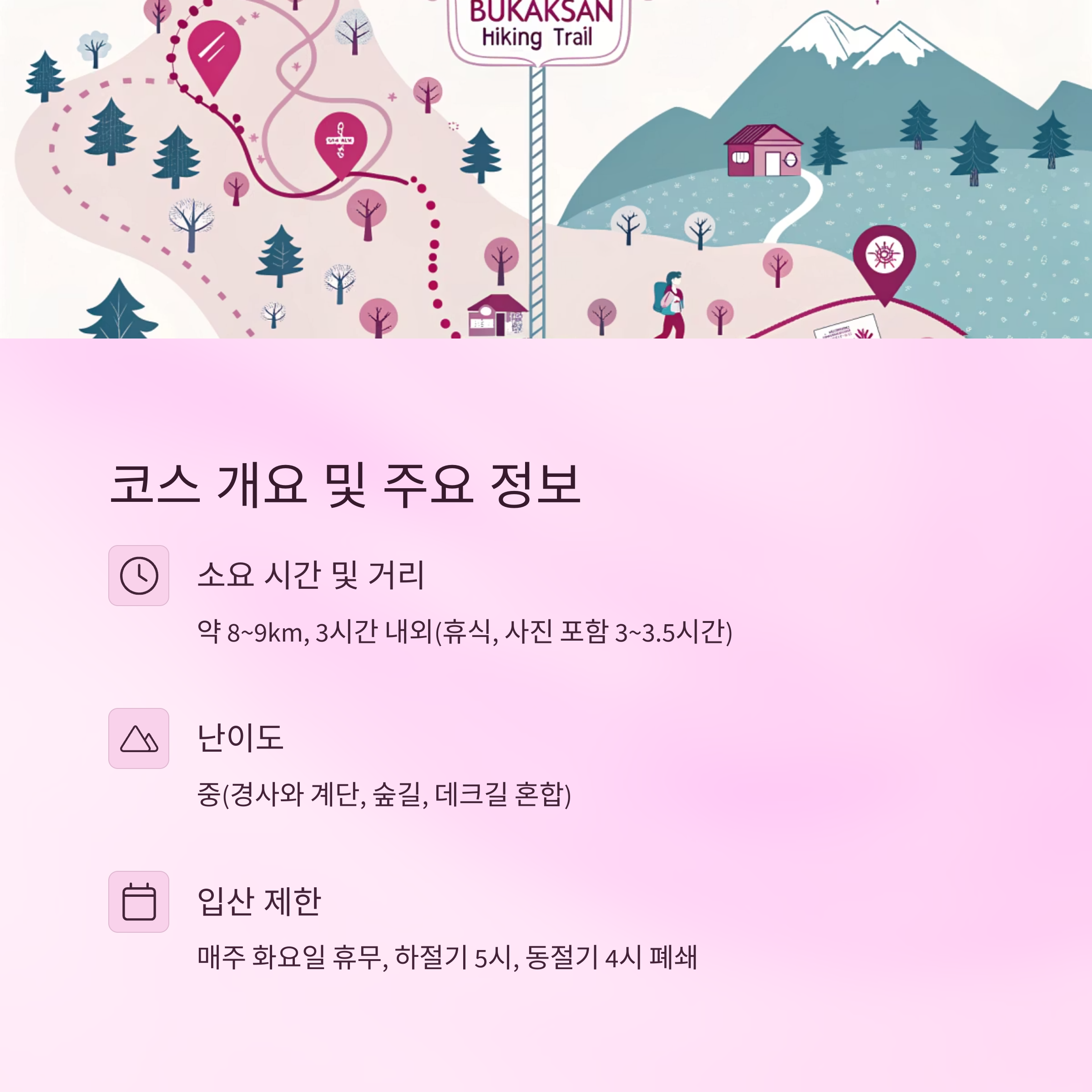 - "입산 시간과 신분증만 잘 챙기면, 초보자도 충분히 완주할 수 있는 도심 최고의 트레킹 코스"