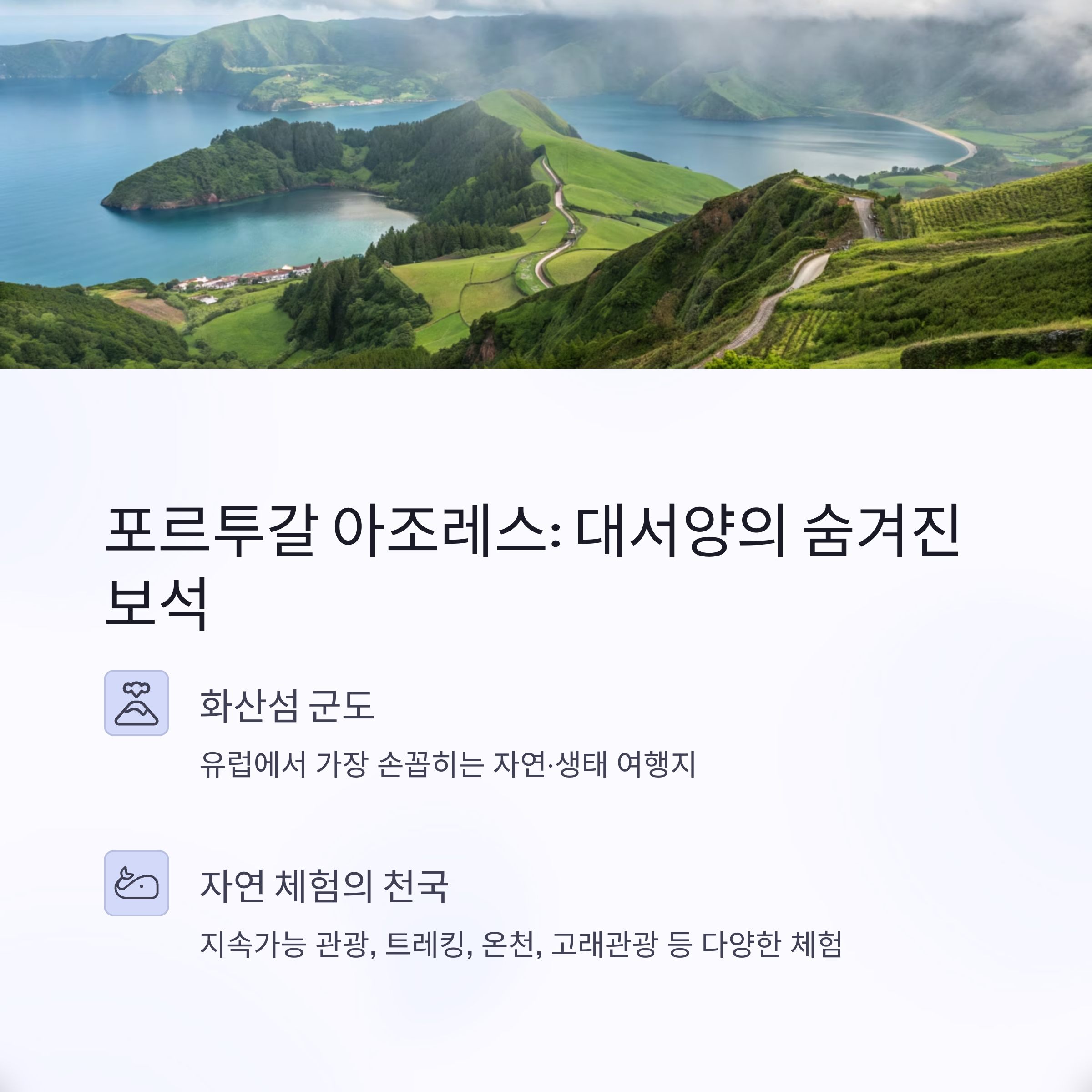 - 왜 추천?: 지속가능 관광, 트레킹, 온천, 고래관광 등 자연 체험의 천국.