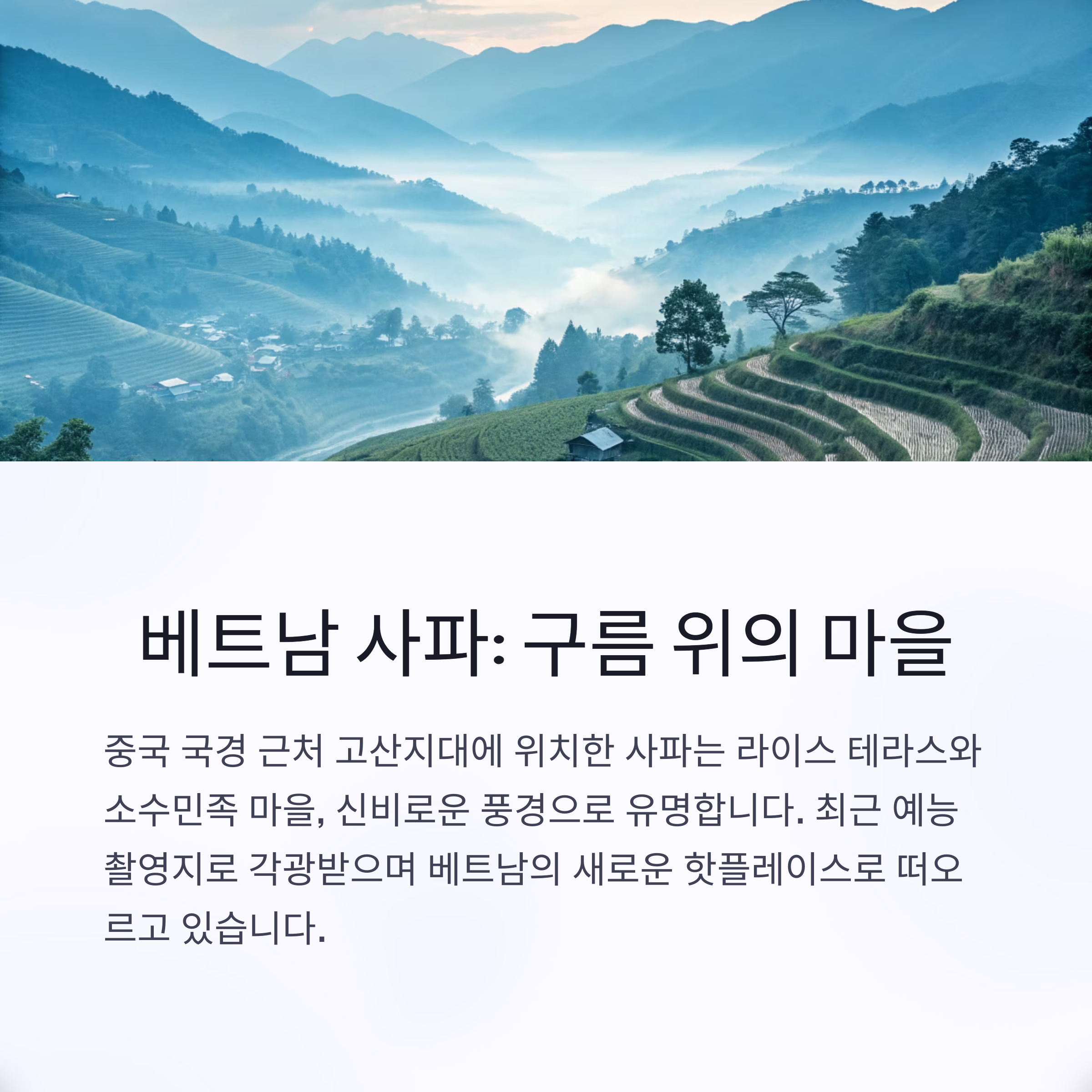 - 방문 팁: 하노이-사파 버스/기차 이용, 3~5월·9~11월 방문 추천