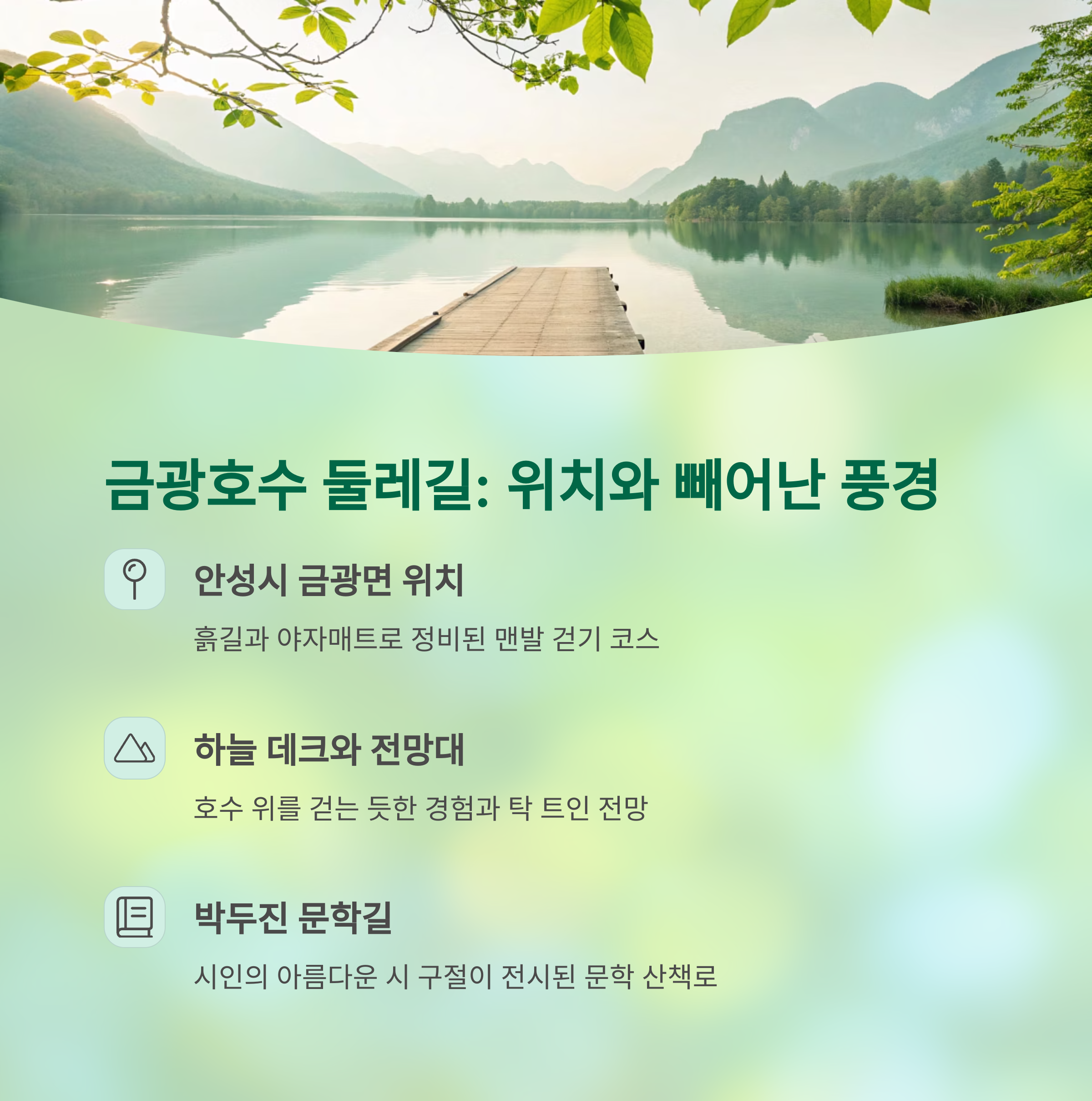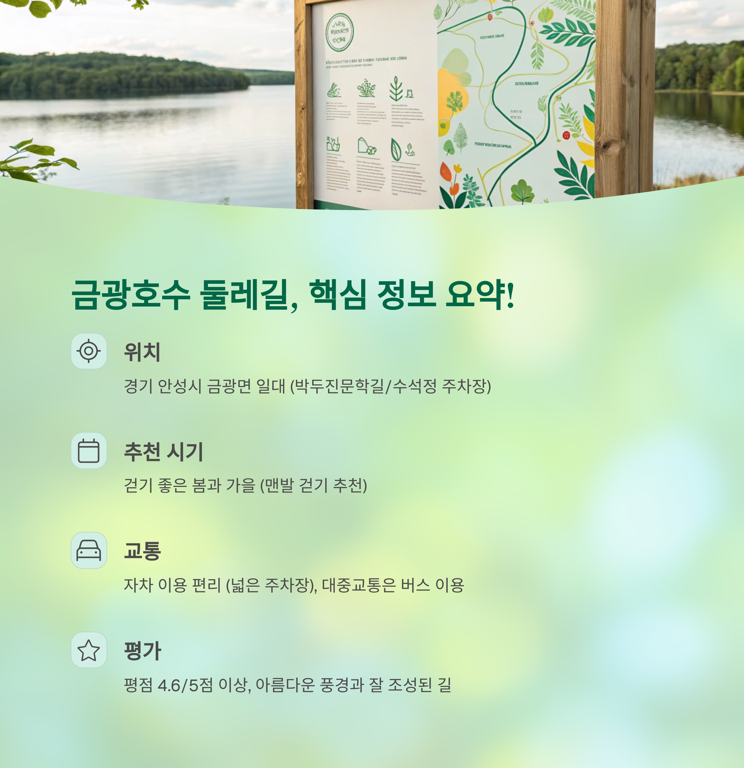 🌿 안성 금광호수 둘레길, 핵심 정보 요약! 🌿