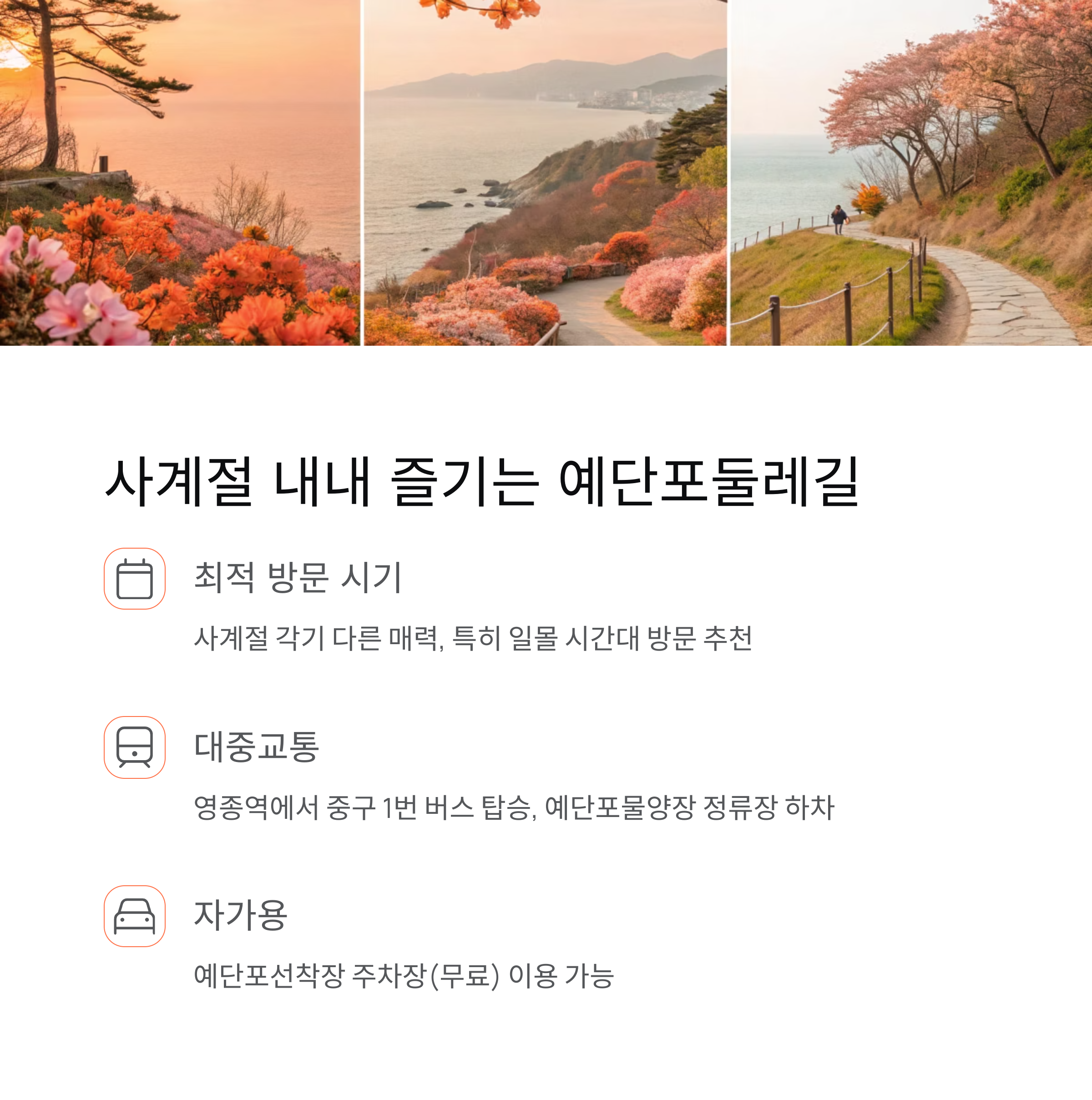 영종도 예단포둘레길: 사계절 추천 방문 시기와 교통편 정보 🚶♀️