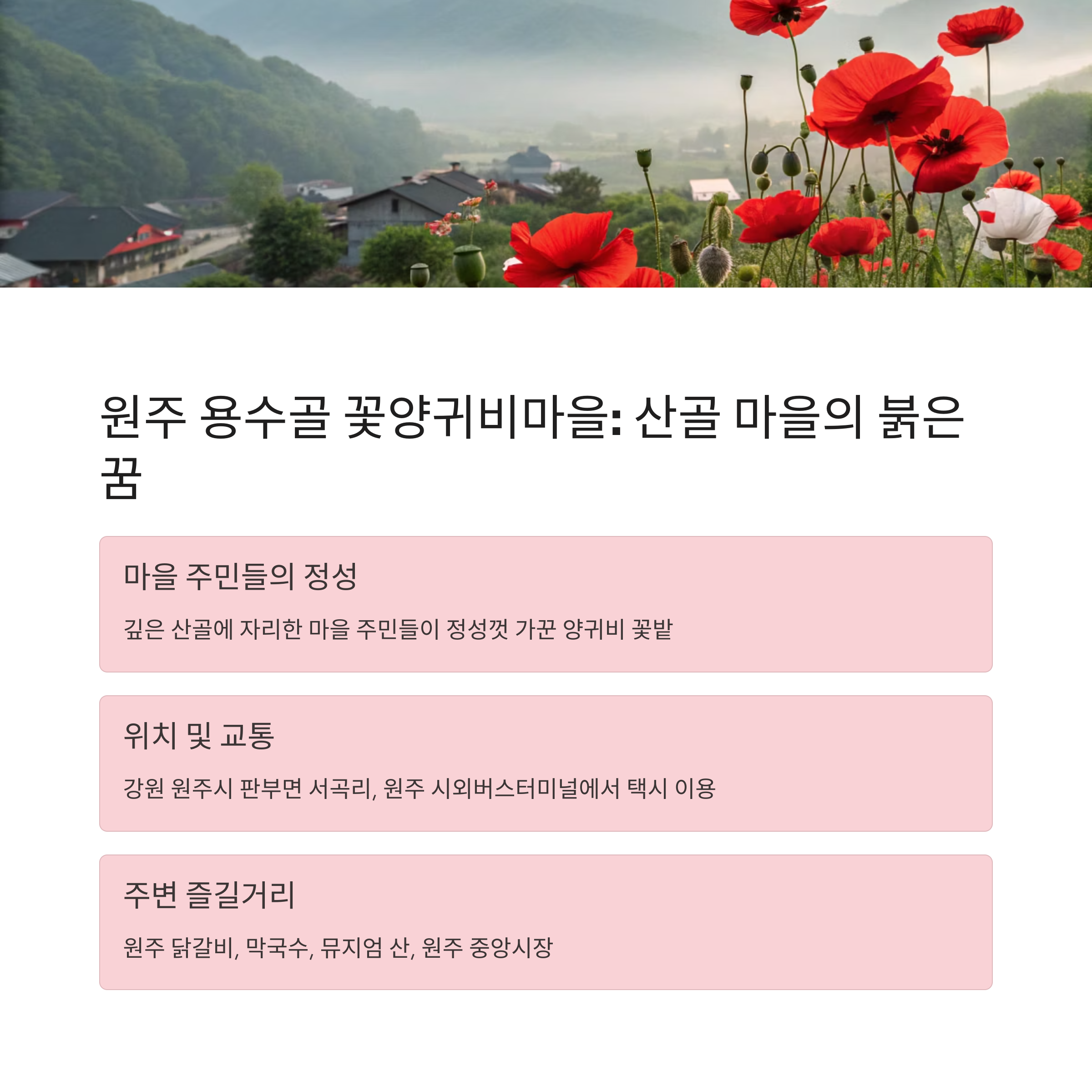 원주 용수골 꽃양귀비마을: 산골 마을의 붉은 꿈 🌸