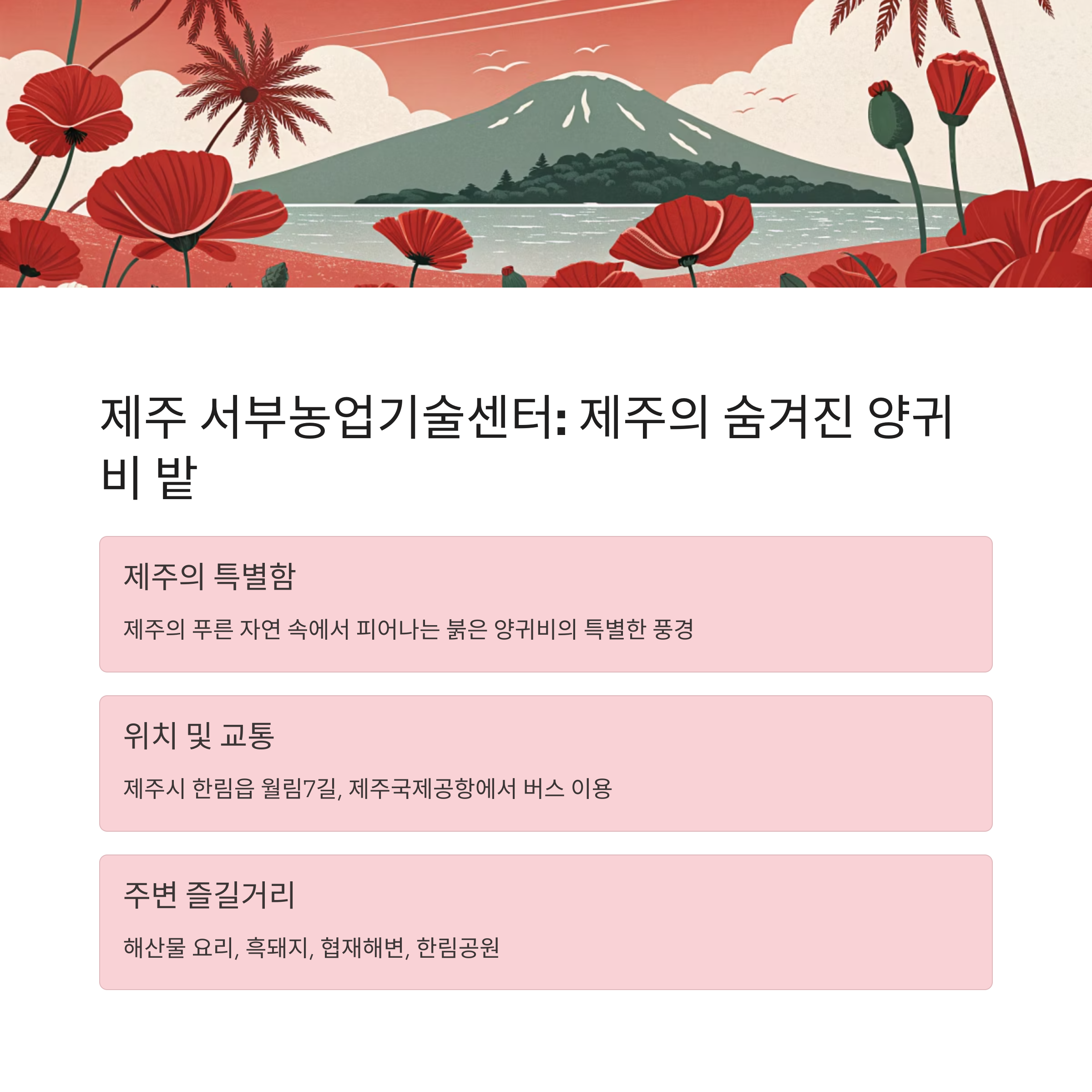 제주 서부농업기술센터: 제주의 숨겨진 양귀비 밭 🌴