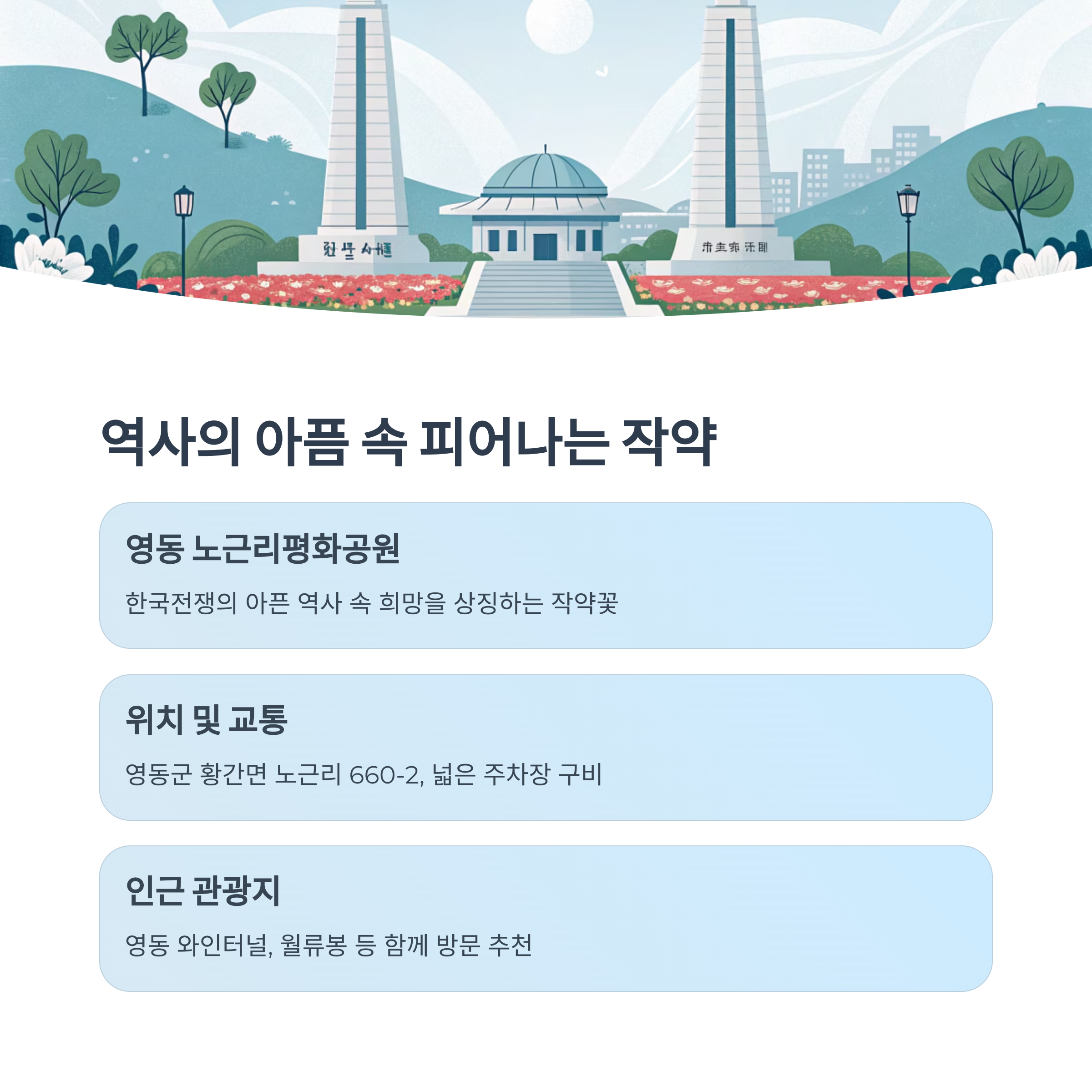 영동 노근리평화공원: 역사의 아픔 속 피어나는 작약 🕊️