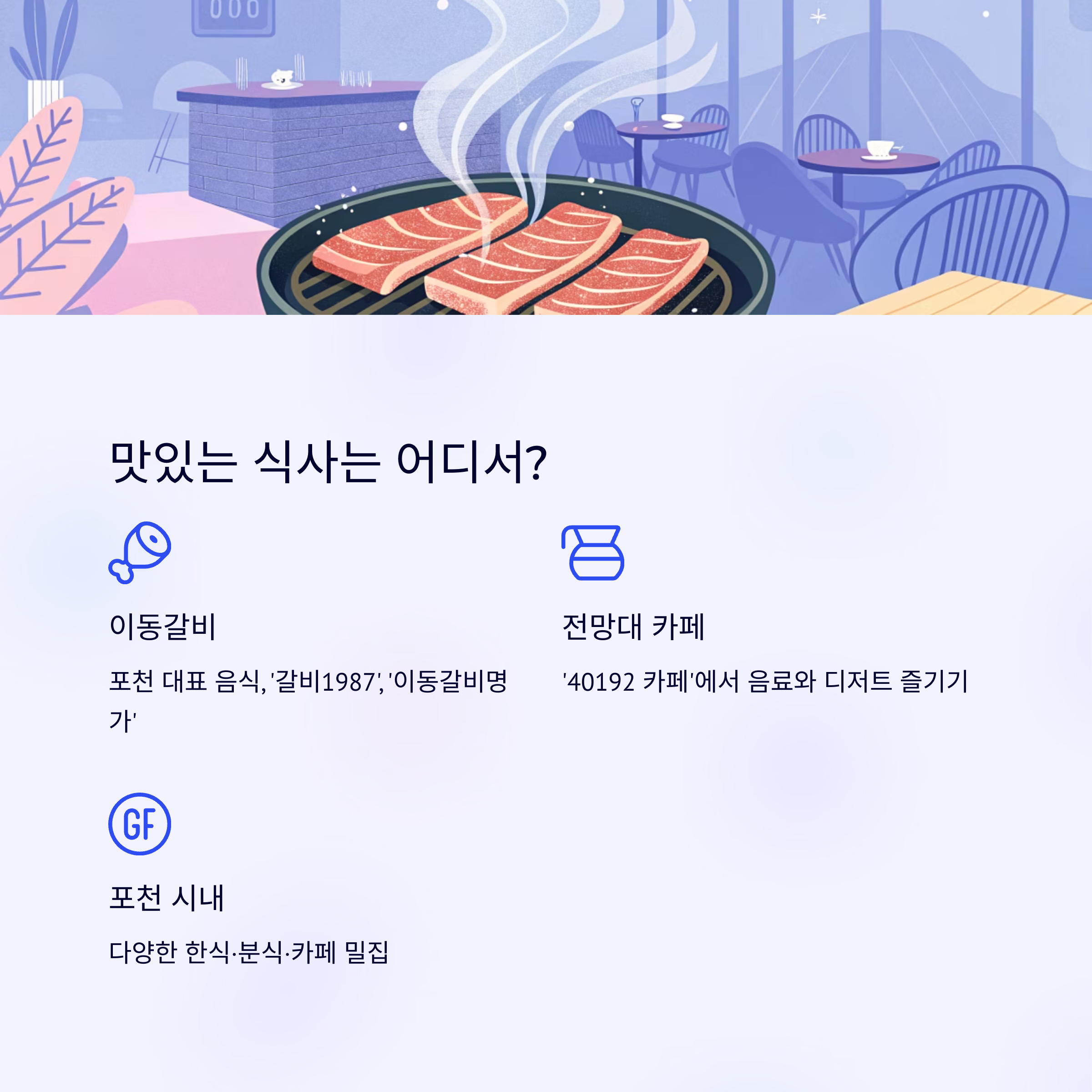 - 포천 시내: 다양한 한식·분식·카페 밀집