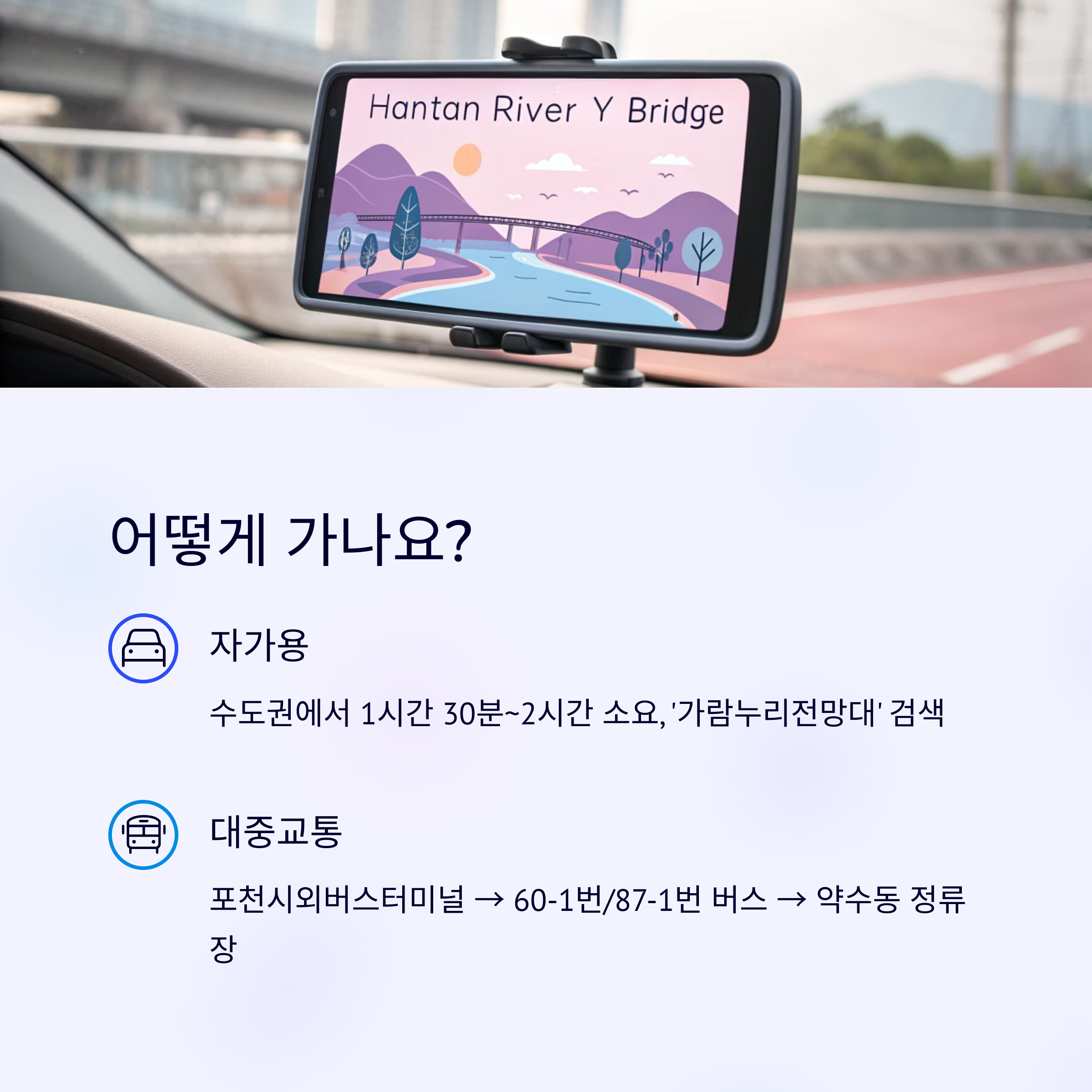 - 네비게이션에 ‘한탄강 Y자 출렁다리’ 또는 ‘가람누리전망대’ 입력