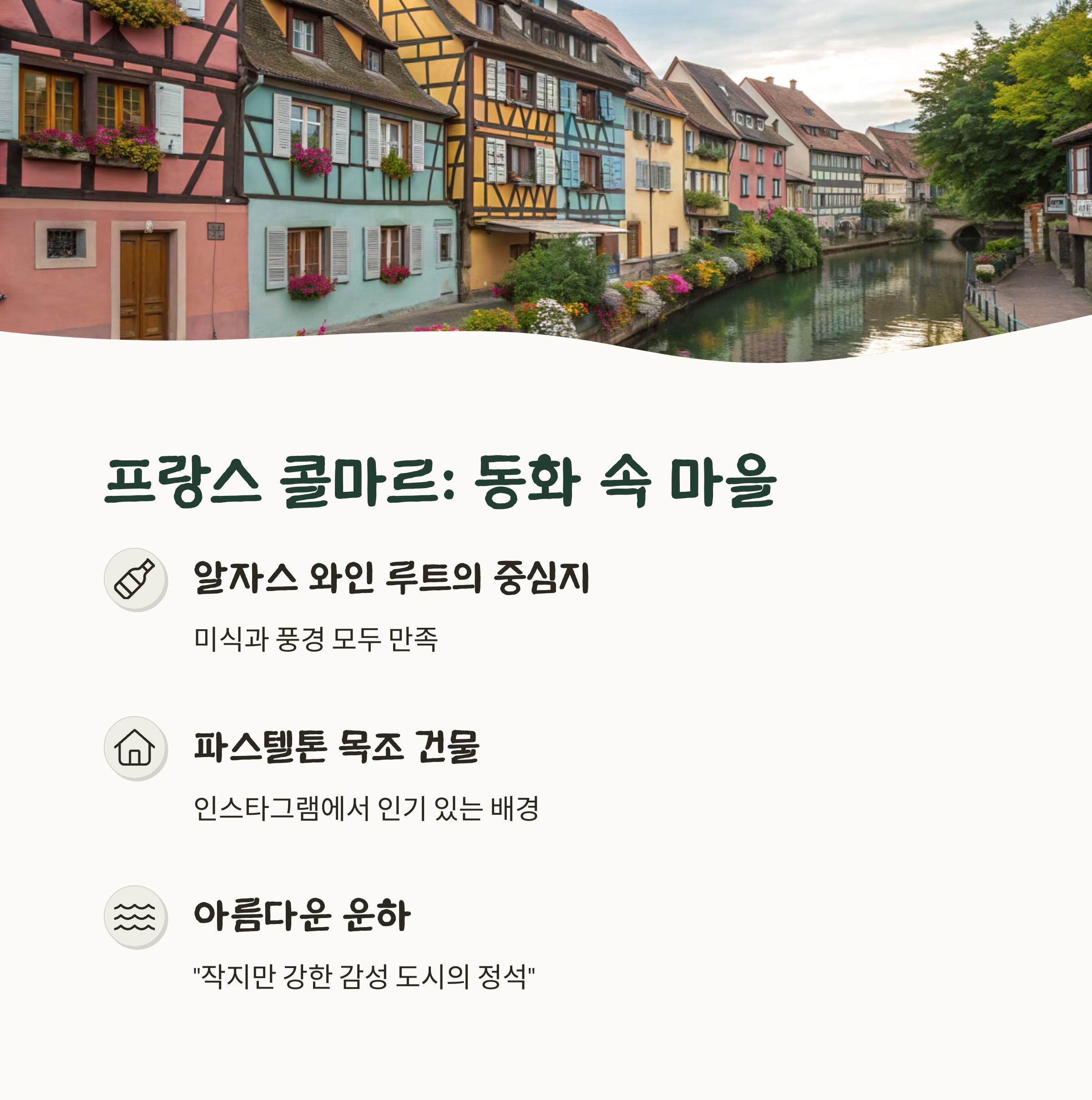 | 콜마르 | 프랑스 | 동화풍 건축, 와인 루트 |