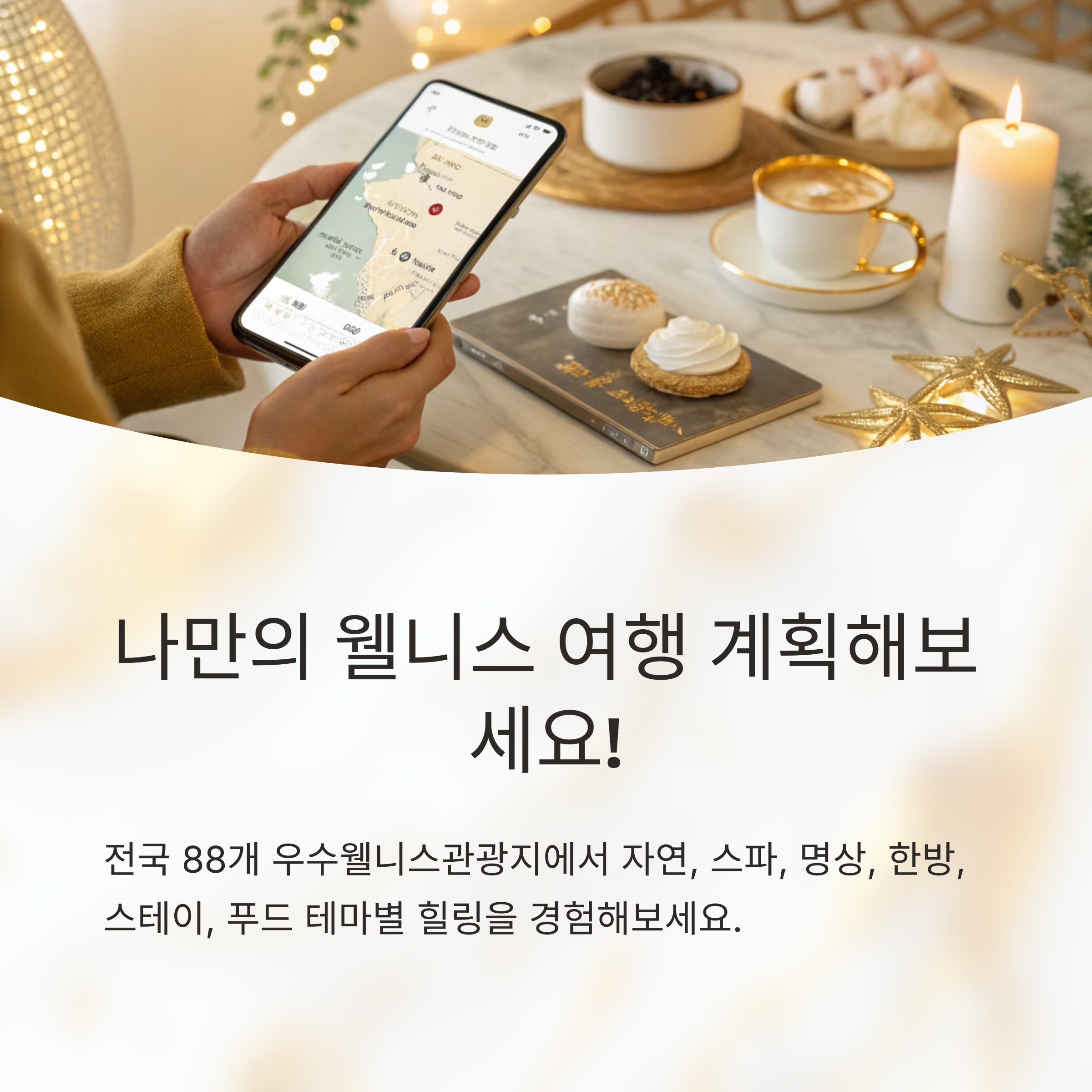 2025년 우수웰니스관광지 88선은 전국 17개 시·도, 6대 테마로 분류되어 있으며, 각 시설별로 산림욕·명상·스파·한방·건강식 등 다양한 웰니스 프로그램을 운영합니다.