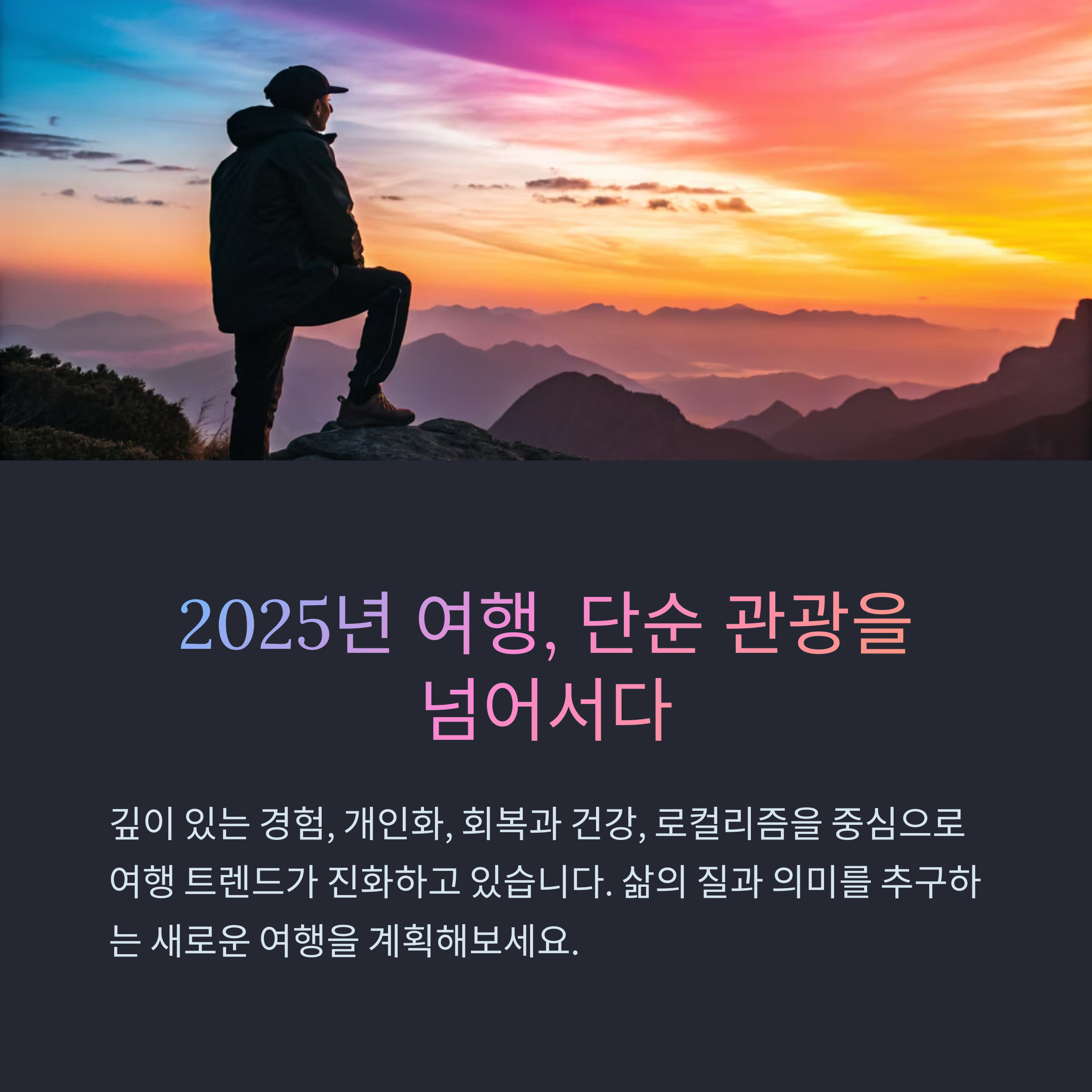 - 개인화·웰니스·로컬 체험 등 새로운 여행 가치와도 맞닿아 있습니다.